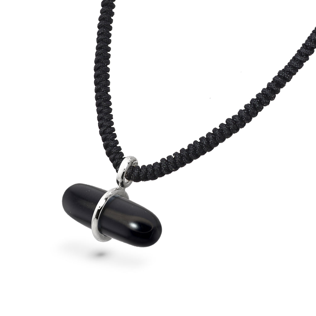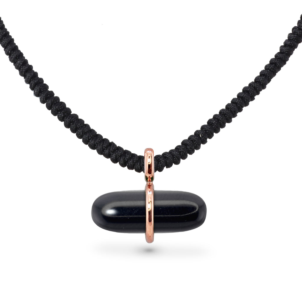 *14K Solid Gold PILLGEM Pendant Natural Black Onyx, with 50cm Black Braided Cord Necklace.