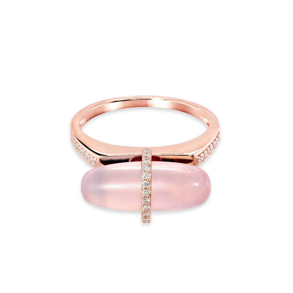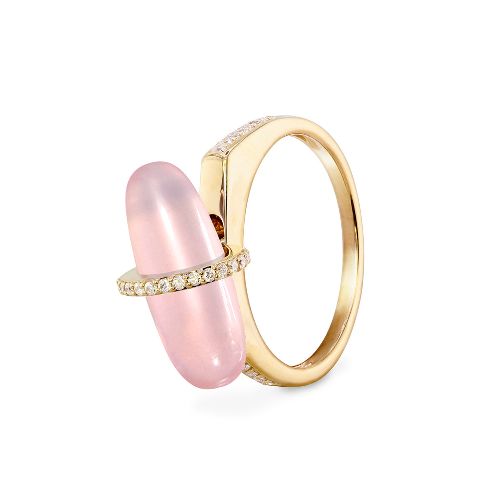 DIAMANTA ROSE QUARTZ GOLD RING WITH DIAMONDS