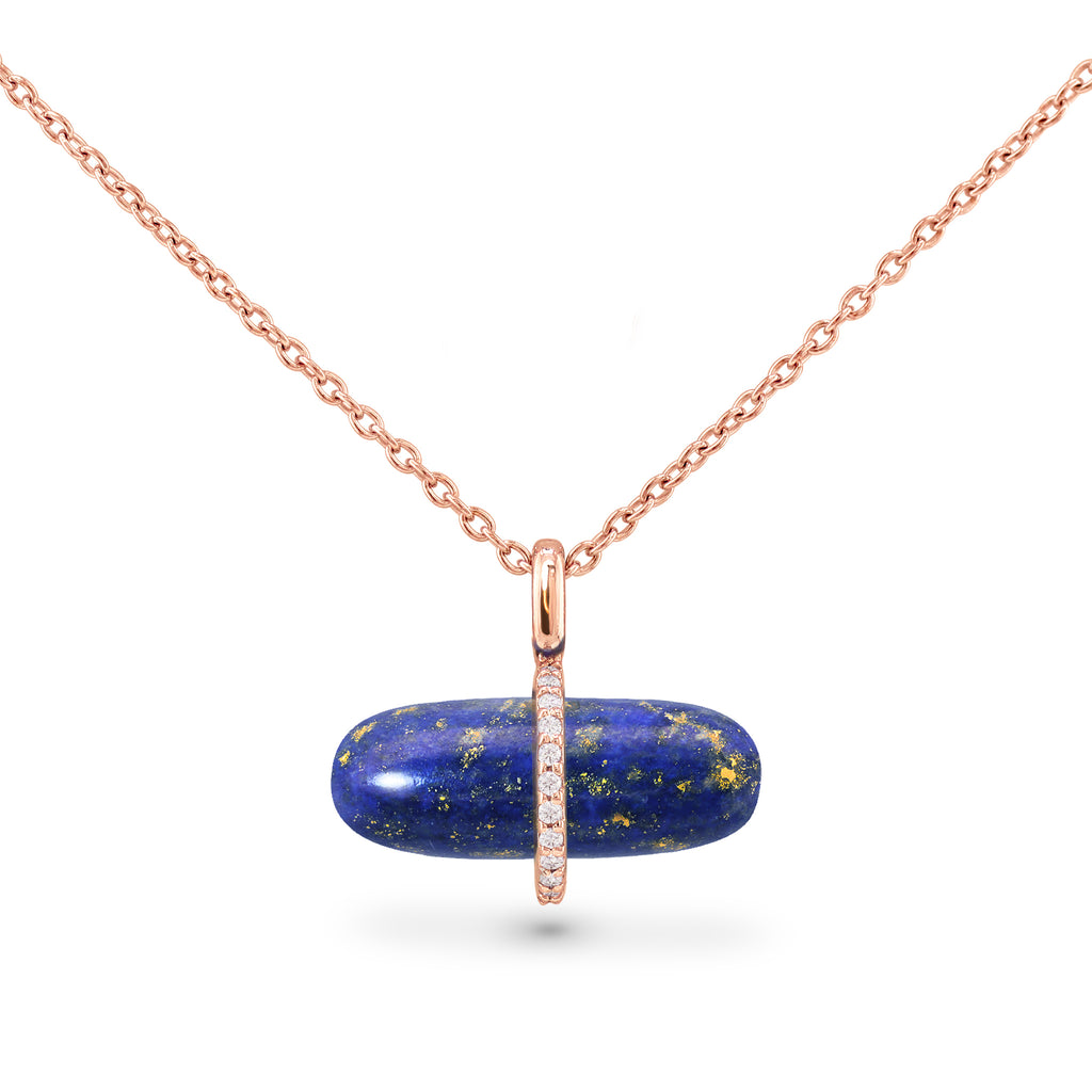 14K Solid Gold PILLGEM Pendant Natural Lapis Lazuli, with 0.11 TCW D Color Diamonds, and 50cm gold chain.