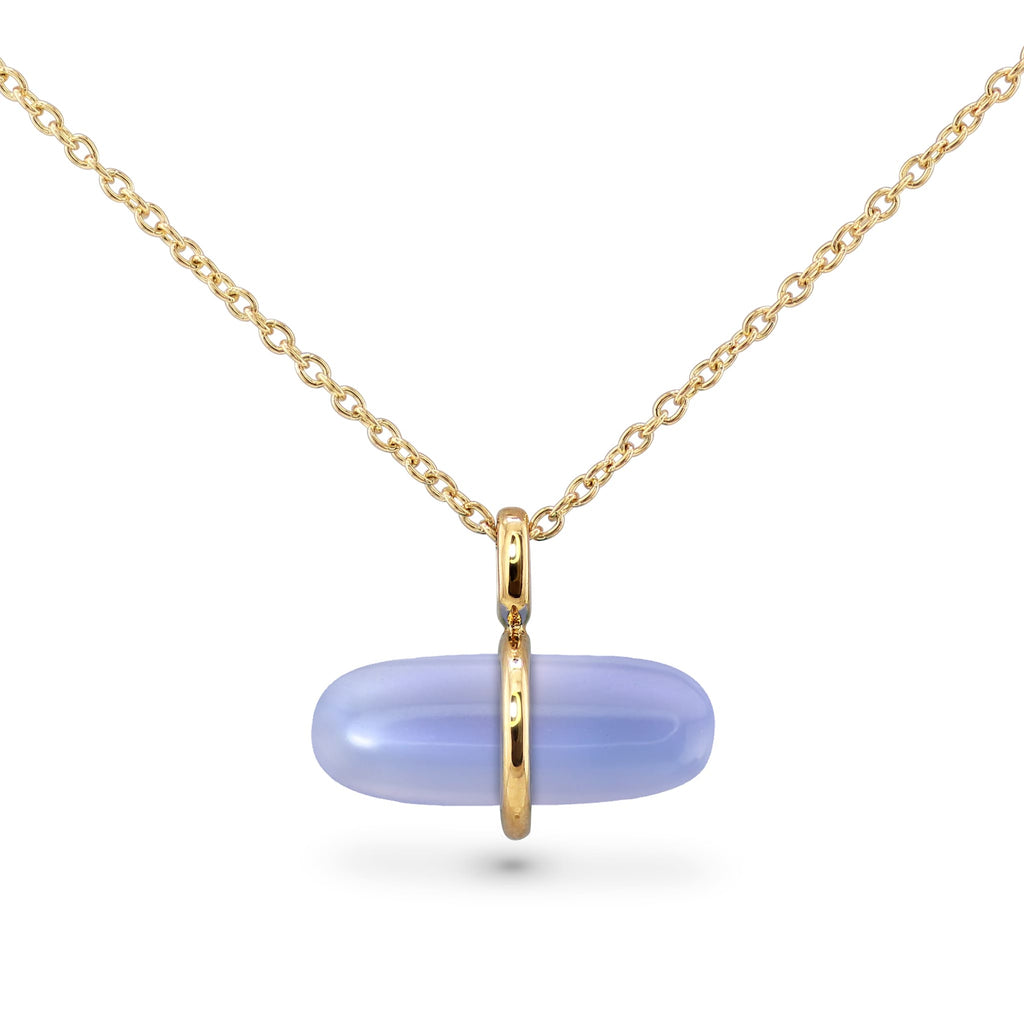 *14K Solid Gold PILLGEM Pendant Natural Sky Agate, with 50cm Gold Chain.